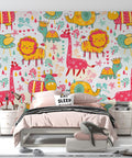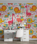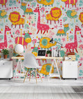 Transform your child’s room into a playful jungle with this colorful safari animals wallpaper mural. Featuring lions, giraffes, elephants, turtles, and birds, the design brings joy and imagination into any space. The bright mix of yellow, red, and teal makes it ideal for nurseries, kids’ bedrooms, or playrooms. Easy to apply and remove, this wallpaper is practical as well as stylish. The cartoon-style details encourage creativity and fun storytelling. Turn any wall into a cheerful safari adventure your kids will love.
