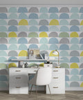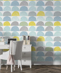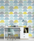 Transform your walls with this modern geometric wallpaper featuring soft blue, yellow, and grey half circle patterns. The playful yet stylish design works beautifully in nurseries, kids’ rooms, playrooms, or even modern living spaces. Made with peel and stick technology, this wallpaper is easy to apply and remove without leaving damage. The soothing colors bring a cheerful yet calming atmosphere, making it ideal for both children and adults. Perfect for accent walls, full-room makeovers, or creative design projects. Add charm and contemporary style to your home with this removable wall mural.