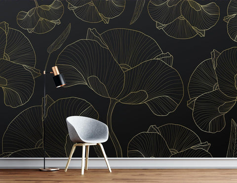 Make a bold impression with this black floral wall mural featuring fine gold outlines of stylized blooms. The large-scale pattern brings both structure and softness, offering a contemporary take on botanical design. Its high-contrast look pairs well with modern, minimal, or even vintage-inspired interiors. Perfect for feature walls, this mural works beautifully in bedrooms, lounges, or creative spaces. The precision of the line art adds a layer of sophistication to any room. Crafted for easy application and lasting visual impact, it transforms ordinary walls into a refined statement.