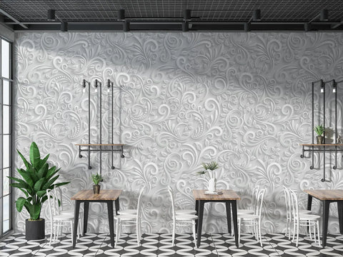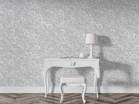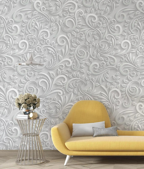 Delicate swirls and soft floral scrolls come to life in this 3D-style white wallpaper mural. Its graceful botanical patterns offer a textured, embossed look, ideal for creating a refined and calming atmosphere. Whether for a statement wall or full-room coverage, this design suits both modern and classic interiors. The subtle shadows and detailing add visual depth without overpowering your space. Ideal for anyone looking to elevate their walls with elegance.