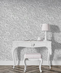 Elegant White Floral Wallpaper Mural – Baroque Style Wall Art