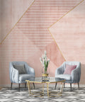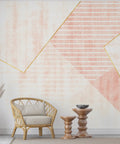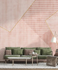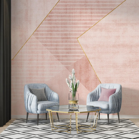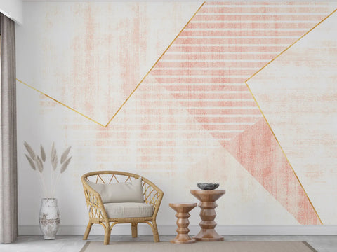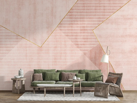 This soft pink wallpaper mural features an elegant geometric composition in blush and rose tones, enhanced by delicate gold line detailing. The textured background and layered shapes add a sophisticated modern aesthetic without overwhelming your space. Ideal for creating a warm and calm accent wall in bedrooms, offices, or creative corners. The muted palette pairs beautifully with both minimalist and modern glam interiors. Available in peel-and-stick and traditional wallpaper options.
