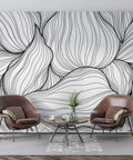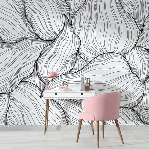 Modern Black and White Abstract Leaf Flow Wallpaper
