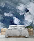 Bring a fresh, calming vibe to your space with this textured abstract wall mural in cool blue and white tones. Its hand-painted look adds artistic depth and a soothing atmosphere, perfect for modern and serene interiors. A subtle yet striking way to elevate your walls.