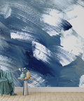 Textured Abstract Wall Mural in Cool Blue and White Tones – Hand-Painted Look Wallpaper